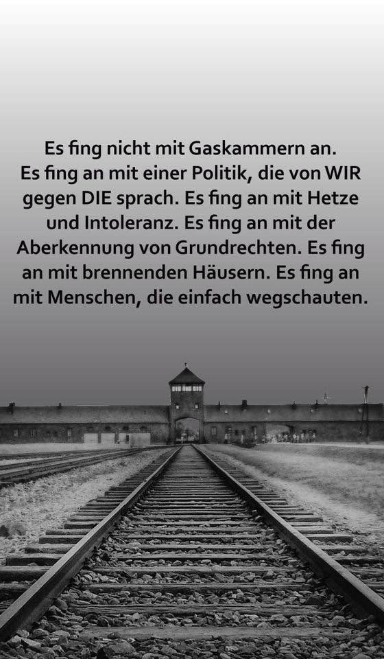"Damals beim Hitler war das schwer. Heute brauchst du nur ein wenig zu googeln. Oder ein wenig nachdenken. Ganz schlimm sind übrigens die Brillenträger zwischen 20 und 30. Letztens hat einer ein kleines Mädchen ermordet, der hat nur eine Therapie bekommen und die Eltern des Mädchens wurden eingesperrt, weil sie nicht auf sie aufgepasst haben!"