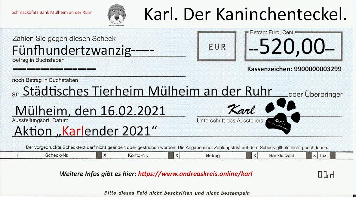 ... aus der Aktion "KARLender 2021" an das Tierheim Mülheim an der Ruhr